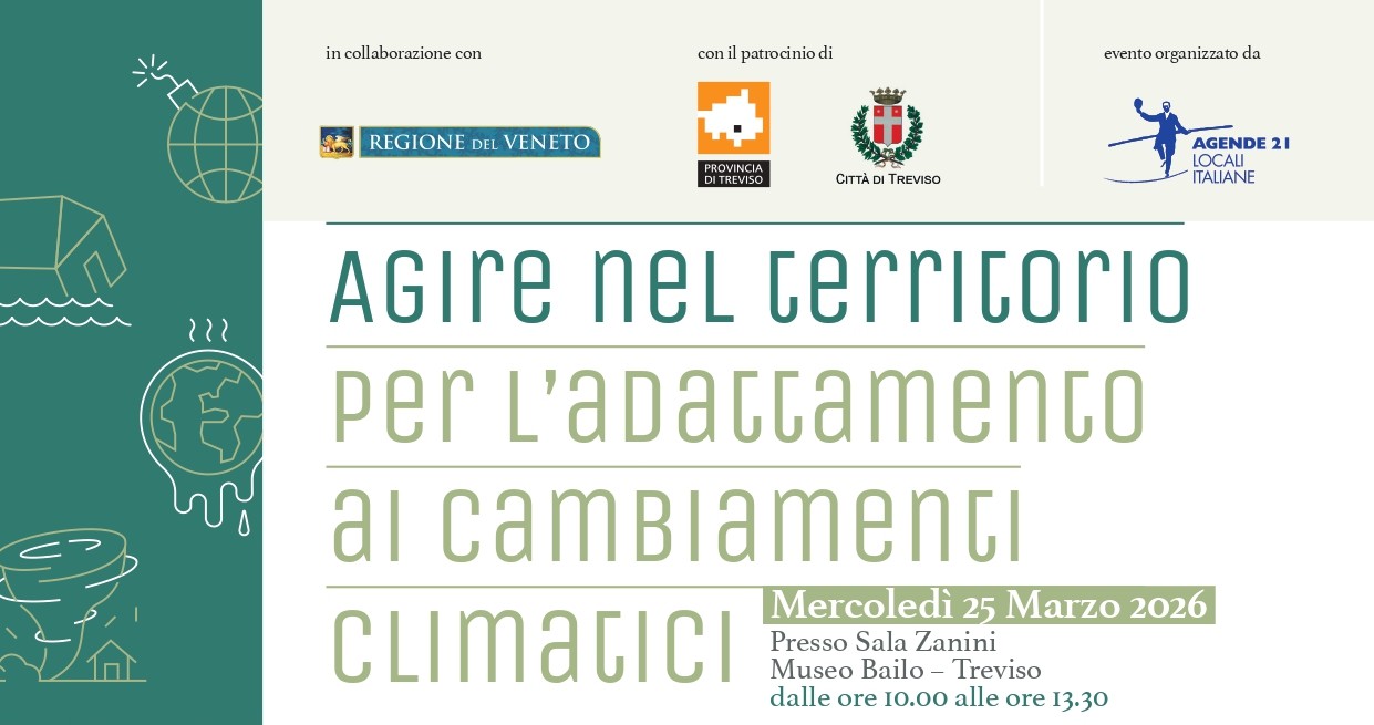Prosegue il ciclo di incontri “Agire nel Territorio per l’adattamento ai cambiamenti climatici” dedicato alle politiche di adattamento ai cambiamenti climatici nella Regione Veneto con il quarto appuntamento che si terrà a Treviso mercoledì 25 marzo dalle ore 10 alle 13.30 presso il Museo Bailo – Sala Zanini.